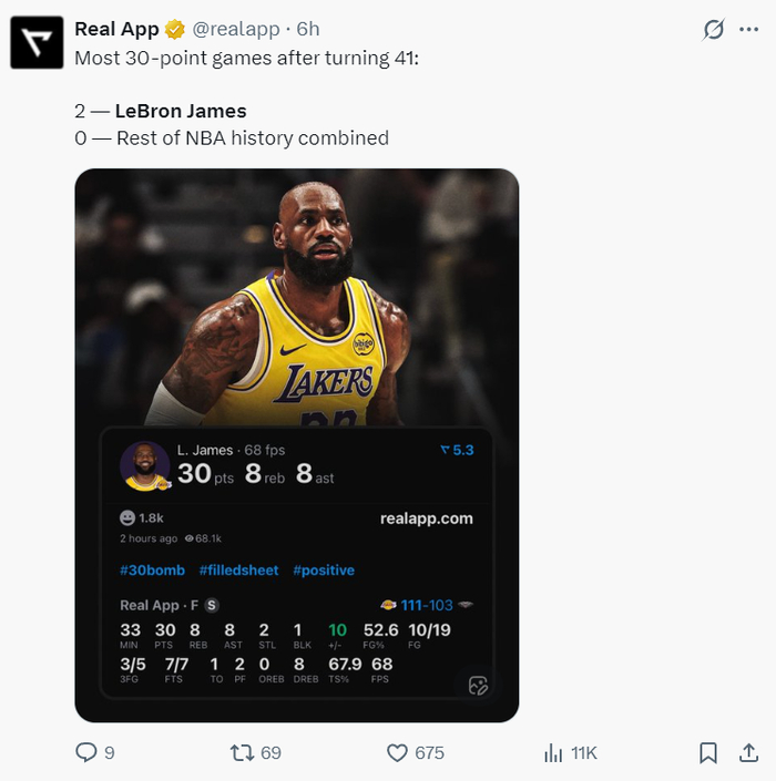 2.生涯574场30+继续刷新自己保持的历史第一纪录;